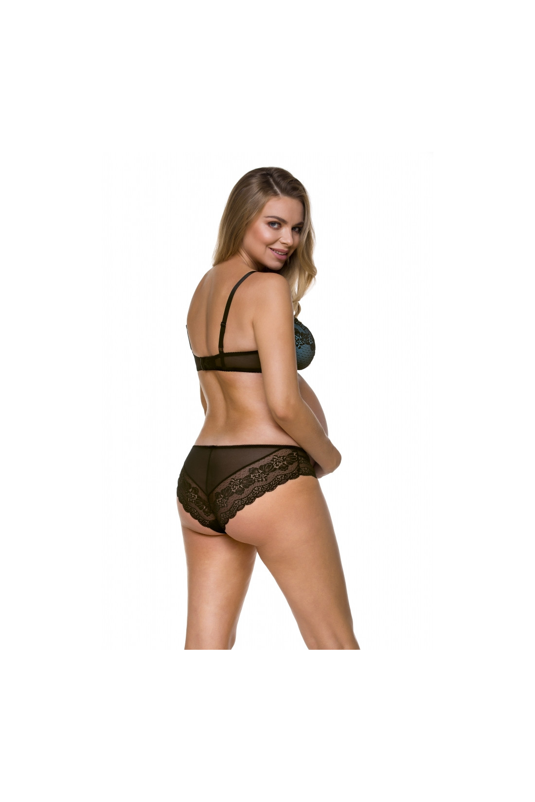 Elegancki, a zarazem praktyczny biustonosz do karmienia, zachowany w niebiesko-czarnej kolorystyce. Posiada miękkie miski na fiszbinach, wnętrze podszyte jest bawełną. Ramiączka regulowane z zapięciem Clic-Clack.