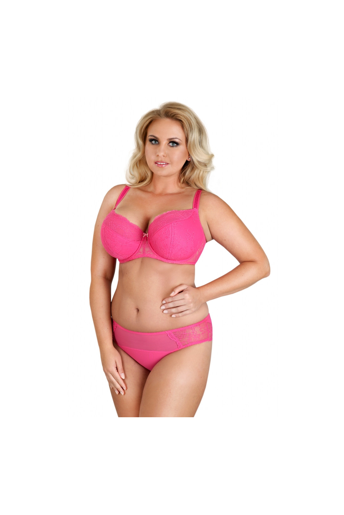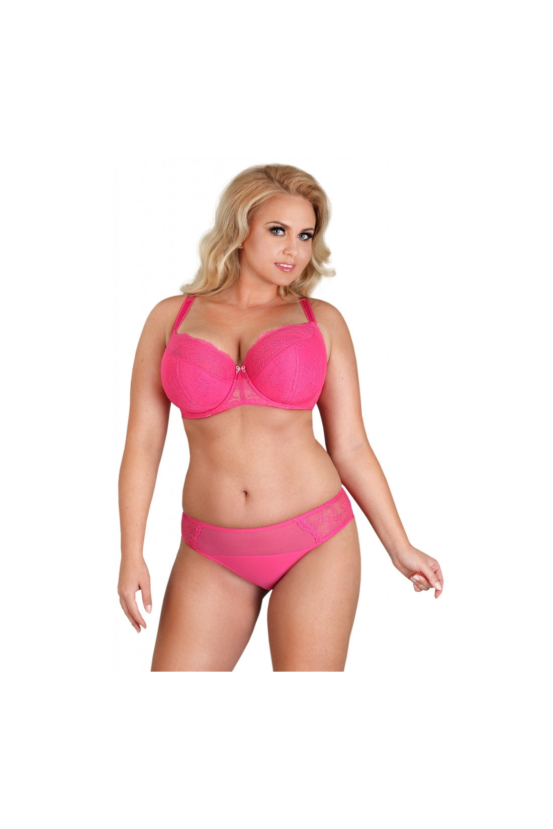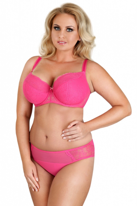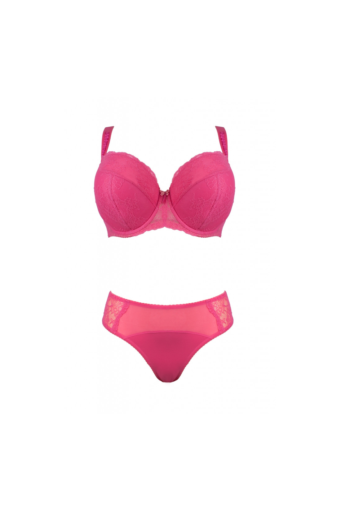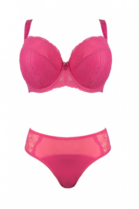 Figi z wyższym stanem, wykonane z dzianiny oraz koronki w kolorze amarantowym.