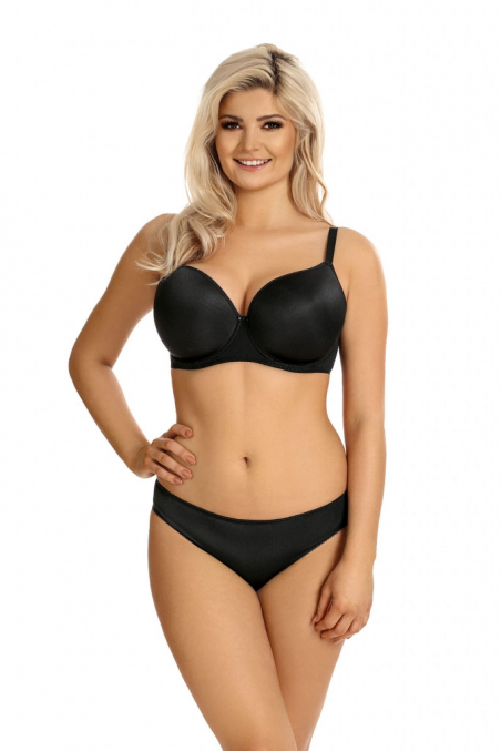 Biustonosz typu kopa, z miseczkami z pianki formowanymi termicznie. Model na fiszbinach. Ramiączka regulowane, nieodpinane. Typ zapięcia i szerokość ramiączek dopasowana do rozmiaru biustonosza.