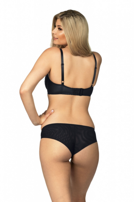 Spodenki w czarnym kolorze, ozdobione kwiecistą koronką.