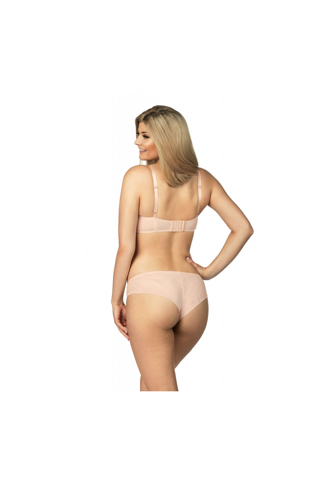 Zniewalający, miękki biustonosz, zachwyca swoim seksownym i wyrafinowanym stylem. Dzięki niskiemu cięciu model pięknie podkreśla i odsłania dekolt. Sprawia to, że biustonosz ten doskonale sprawdzi się pod kreacjami z większym dekoltem. Dopracowana konstrukcja, w tym pionowe cięcie miseczek, doskonale unosi oraz formuje biust. Elastyczne boczki idealnie przylegają do ciała zapewniając komfort noszenia. Ramiączka regulowane. Miseczki wykonane z przejrzystego materiału otulone kwiecistą koronką.